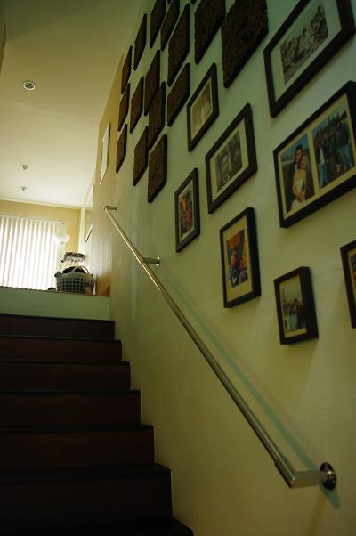 ช่องบันไดมองลงไป เอาพวกรูปมาแขวนริมผนัง แก้ความน่าเบื่อของผนังโล่งๆ