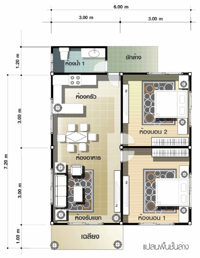 - แบบบ้านชั้นเดียวเนื้อที่น้อย