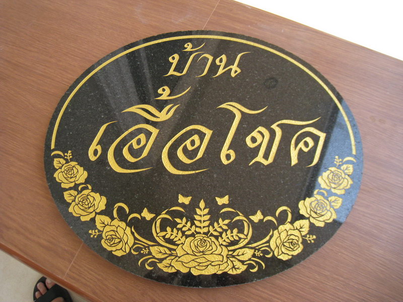 มีแกรนิตเหลือ 5 แผ่นแน่ะ ใหญ่สุดคือจากหลุมซิงค์คู่ล้างชาม (จะเปทำหน้าโต๊ะเนี่ยแหละ) ที่เหลืออีก 4 อัน จากหลุมอ่างล้างหน้าในห้องน้ำ ก็แบ่งเอามาทำป้ายชื่อบ้านซะอันนึง (ค่าแกะชื่อ 300 บาทเอง) และที่เหลือก็เอามาตัดเข้ามุม ติดในห้องน้ำ ทำเป็นชั้นวางยาสระผม กระป๋องแป่ง ฯลฯ ค่ะ