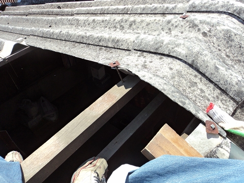 แต่เนื่องจากกระเบื้องเก่าอายุ10กว่าปี และเจ้าของบ้านเดิมใช้กระเบื้องหนาแค่4มิล ขนาดผมน้ำหนักแค่สี่สิบกว่า เหยียบตรงแป แถมมีไม้วางพาดยาวตามลอนกระเบื้องเพื่อกระจายน้ำหนักแล้วก็ยังมีร้าว