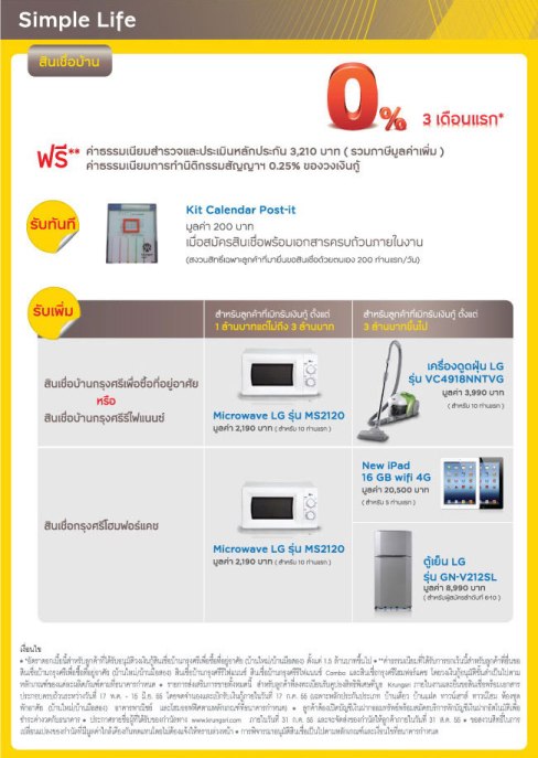 โครงการพิเศษ "K-Home Loan สินเชื่อบ้านกสิกรไทย ยืดเวลาให้ผ่อนยาวกว่าใครถึง 50 ปี พร้อมให้สิทธิพิเศษอัตราดอกเบี้ยสินเชื่อบ้าน 0% 6 เดือน และร่วมลุ้นรถยนต์บีเอ็มดับเบิ้ลยู (520d) จำนวน 1 รางวัล และ New iPad จำนวน 49 รางวัล ร่วม 50 รางวัล