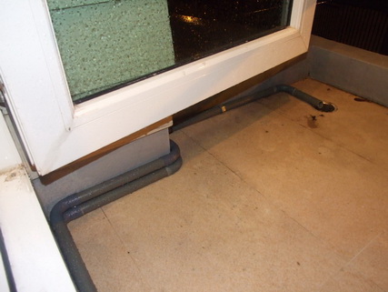 เนื่องจากไม่อยากหันด้านพัดลมร้อนเข้าทางห้องเลยหันไปอีกทางผิดธรรมชาติไปหน่อยเพราะสายไฟมันอยู่อีกด้านนึง เลยต้องลากท่อแบบนี้