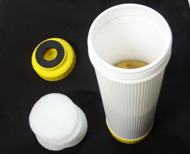 2. ไส้กรองเรซิ่นที่แถมมาลักษณะแบบกระบอกสีขาว ท้ายและหัวสีเหลือง มีโอกาสที่เม็ดเรซิ่นรั่วออกมาจากกระบอกได้แน่นอนครับ ซึ่งอันนี้ผมขอค้านกับของท่าน naytee ที่บอกว่าโอกาสรั่วไม่มี