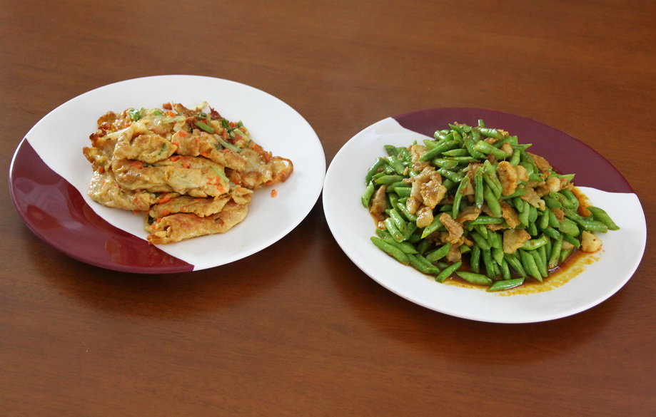 สองจานคู่กัน รายงานว่าอร่อยมาก ถั่วฝักยาวสดๆผัดเสร็จยังกรุบกรอบเคี้ยวเพลิน เผ็ดน้ำมูกไหลไปตามๆกัน