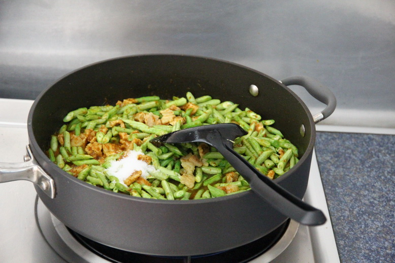 แล้วถั่วฝักยาวก็ตามลงกระทะไป ผัดๆคลุกๆให้ทั่ว