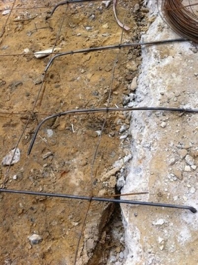 เนื่องทางโครงการเทพื้นปูนเดิมไว้ให้ 2เมตรค่ะ. ช่างพยายามจะสกัดขอบปูนเพื่อเชื่อมเหล็กระหว่างพื้นปูนเก่า-ใหม่ แต่อุปกรณ์ช่างไม่อำนวยค่ะ จึงใช้วิธีฝากเหล็กกับปูนเก่าแล้วผูกกับลวดยึดไว้ มีท่านไหนมีความเห็นเพิ่มเติมมั้ยค่ะ