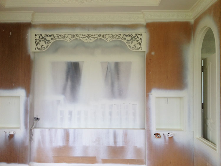 เราว่าถ้าไม่เพ้นท์ แล้วทาผนังสีขาวมันอาจจะทำให้เห็นลายไม่ชัด เลยคิดว่าเพ้นท์น่าจะดีกว่าค่ะ