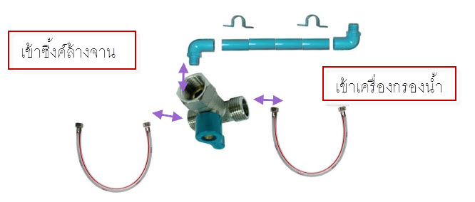 ส่วนการต่อก๊อก ให้ทิศทางได้ตามที่ต้องการ กรณีแบบนี้ไม่ควรใช้ข้องอเกลียวใน