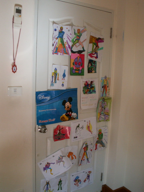 นี่คือประตูในห้อง แทบไม่มีที่ติดแล้ว