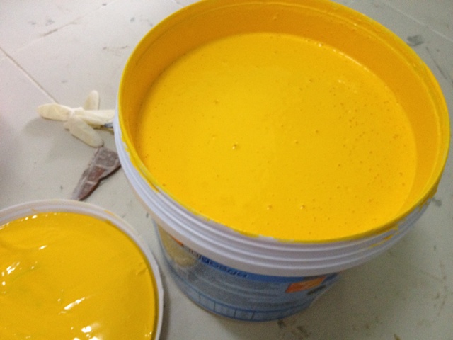 เริ่มลงสีเหลืองครับ เดินไปเดินมาอยู่นานไม่รู้จะเริ่มตรงไหน แถมสีเหลืองแพงมากด้วย(ค่าแม่สี8ร้อยกว่า)
