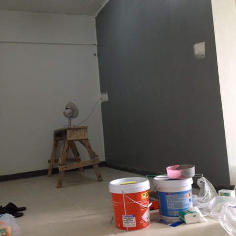 ในห้องนอนครับ มีน้องจากที่ทำงานมาช่วยทาด้วย ผ่อนแรงไปเยอะเลยครับ