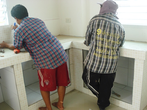 ช่างก่อเคาร์เตอร์ เป็นช่างที่ศรีราชาค่ะ พวกเราไม่ได้อยู่กรุงเทพง่ะ