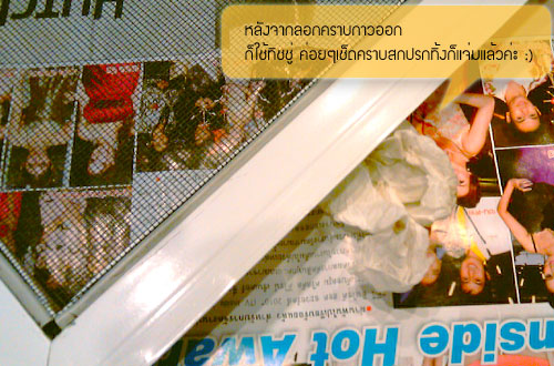 ก็เอาสเปรย์พ่นไปอีกที แล้วเอาทิชชู่เช็ดคราบกาวที่เหลือออกให้สะอาดเกลี้ยงเกลาได้เลยค่ะ 🙂