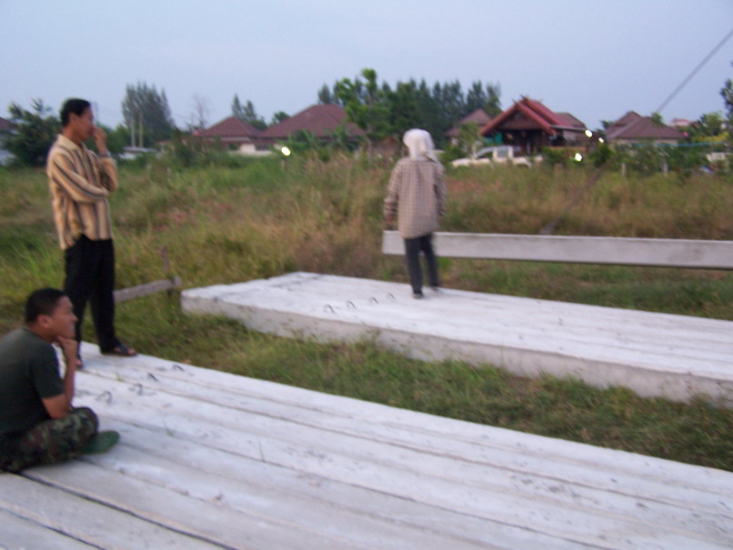 หลังจาก รอมานานเป็นเวลาสองเดือนกว่า ในที่สุด ฝนก็หยุดตก ถนนและเขตบ้าน ก็เริ่มแห้ง ได้ฤกษ์ได้ชัยที่จะโทรไปบอก บริษัทคอนกรีต ให้มาส่งเสาเข็มที่สั่งไว้ ตั้งแต่ต้นเดือนสิงหาคม จ่ายตังค์ไปแล้วด้วย ให้มาส่ง (ตอนนี้ ต้นเดือนพฤศจิกายน) เพราะบ้านเราอยู่ มหาสารคาม ฝนตก บ่อยมาก ตอนนี้น้ำใกล้ท่วมแล้ว แต่ยังไม่ถึงที่ ตอนแรก จะให้มาตอกวัน 12 สิงหาคม ฝนก็มาตกก่อน ทำให้ถนนแฉะ รถเข้ามาไม่ได้ บริษัทยังบอกมาอีกว่า ถ้าไม่ชัวร์ เรื่องถนน บริษัทจะไม่มา เพราะ ถ้าเกิด รถติดหล่ม ขึ้นมา ทางเราต้องเป็นผู้รับผิดชอบ หารถ มาดึงออกให้ ค่าใช้จ่ายก็จะต้องตกอยู่ที่เราด้วย เราก็ เอ้ย ไม่เป็นไร รอได้ จนบัดนี้ รถเสาเข็มก็มาส่ง ถึงจุดหมายแล้ว วันที่ 3-11-2553 เราก็ดีใจใหญ่ น้องชายโทรมาบอก ว่า เรียบร้อยแล้ว จะให้ลงเสาเข็มวันไหน เราก็บอกว่าฤกษ์สะดวกก็ได้ เพราะ เราชอบวันศุกร์ วันเป็นวันศุกร์ ที่ 5 เลยก็ได้ เหมือนวันเกิดเรา แต่พ่อบอกว่า ไม่ได้ ต้องดุฤกษ์ ดูยาม พ่อ เลยโทรไปถามย่า ย่าบอกว่า เป็น วัน อังคาร ที่ 9 ก็โอเค บอกให้หัวหน้าช่าง ที่ทำงานนี้ ไปติดต่อปั่นจั่น เค้าก็มาแต่เช้าเลย หกโมงเช้า มาถึงที่ มาจากขอนแก่น น่านับถือ จริง ๆ ไม่คิดว่าเช้าขนาดนี้ พอมาถึงที่ ก็ ……………..มาดูกันว่าเกิดอะไร