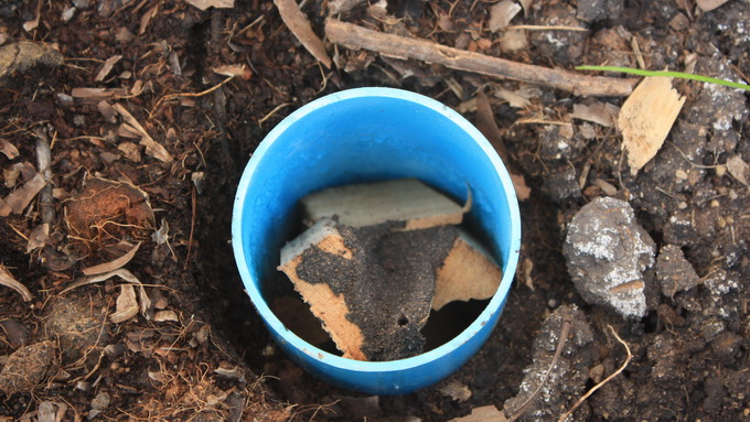 ข้างในใส่เศษไม้เศษกระดาษล่อปลวกมากิน